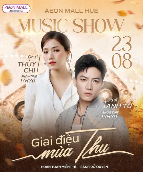 Tháng 8 tại AEON MALL Huế đã bùng nổ với sự góp mặt của ca sĩ THÙY CHI và ca sĩ ANH TÚ tại đêm nhạc hội Giai điệu Mùa thu